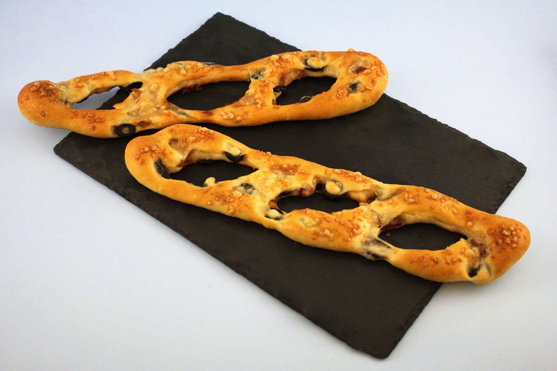 ロレーヌ産岩塩を使用したフランスパン生地にブラックオリーブとくんちゃまベーコンを包み、カリカリに焼き上げました。カリっと焼き上げられた生地と、オリーブの食感が癖になる一品。おつまみにもぴったりです。