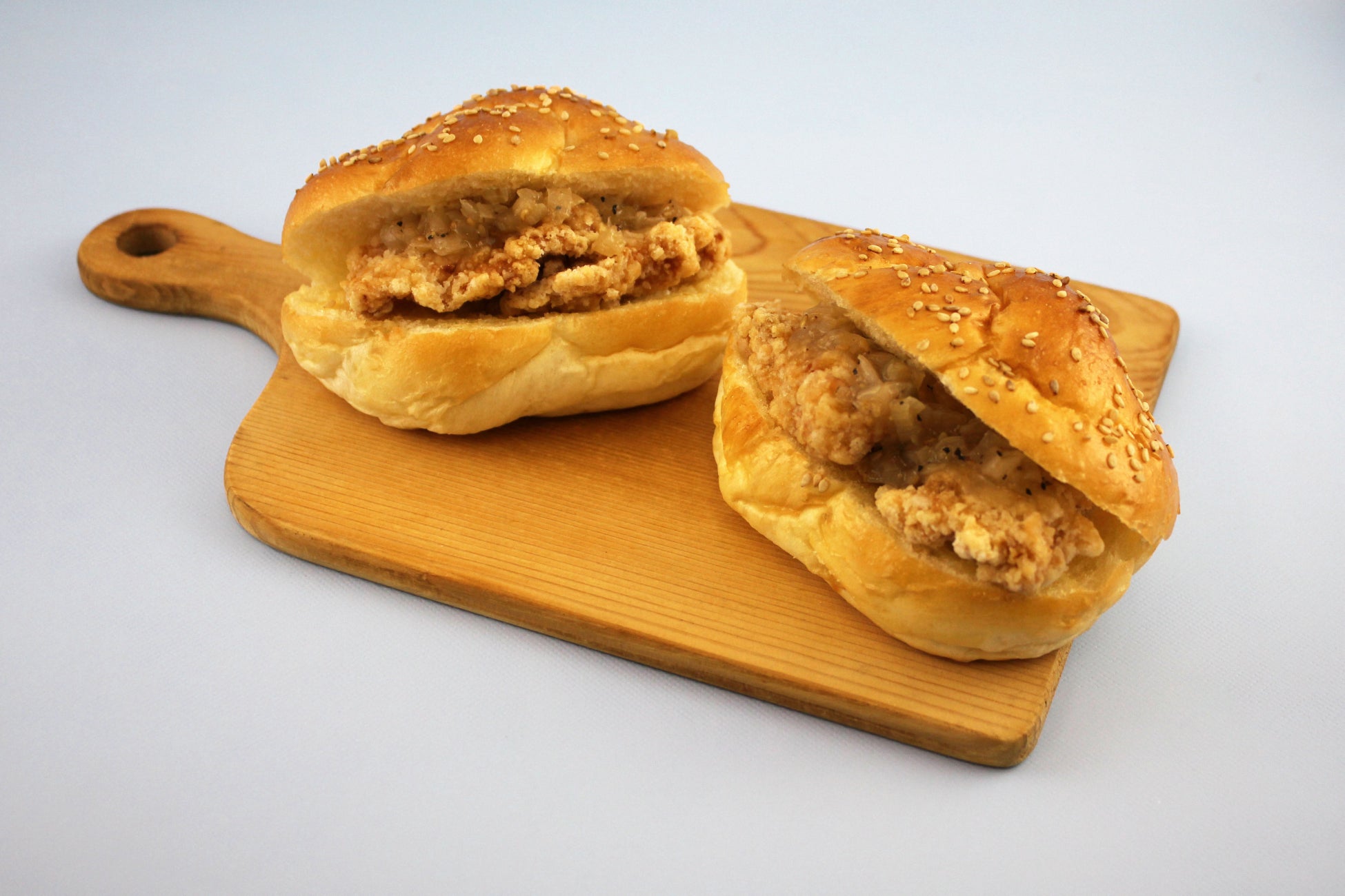 チキンフィレ竜田揚げにねぎ塩ソースをトッピングし、ふわふわのパンでサンドしました。シャキシャキとしたねぎの食感と塩の効いたソースがチキンに絡み、さっぱりお召し上がりいただける一品です。