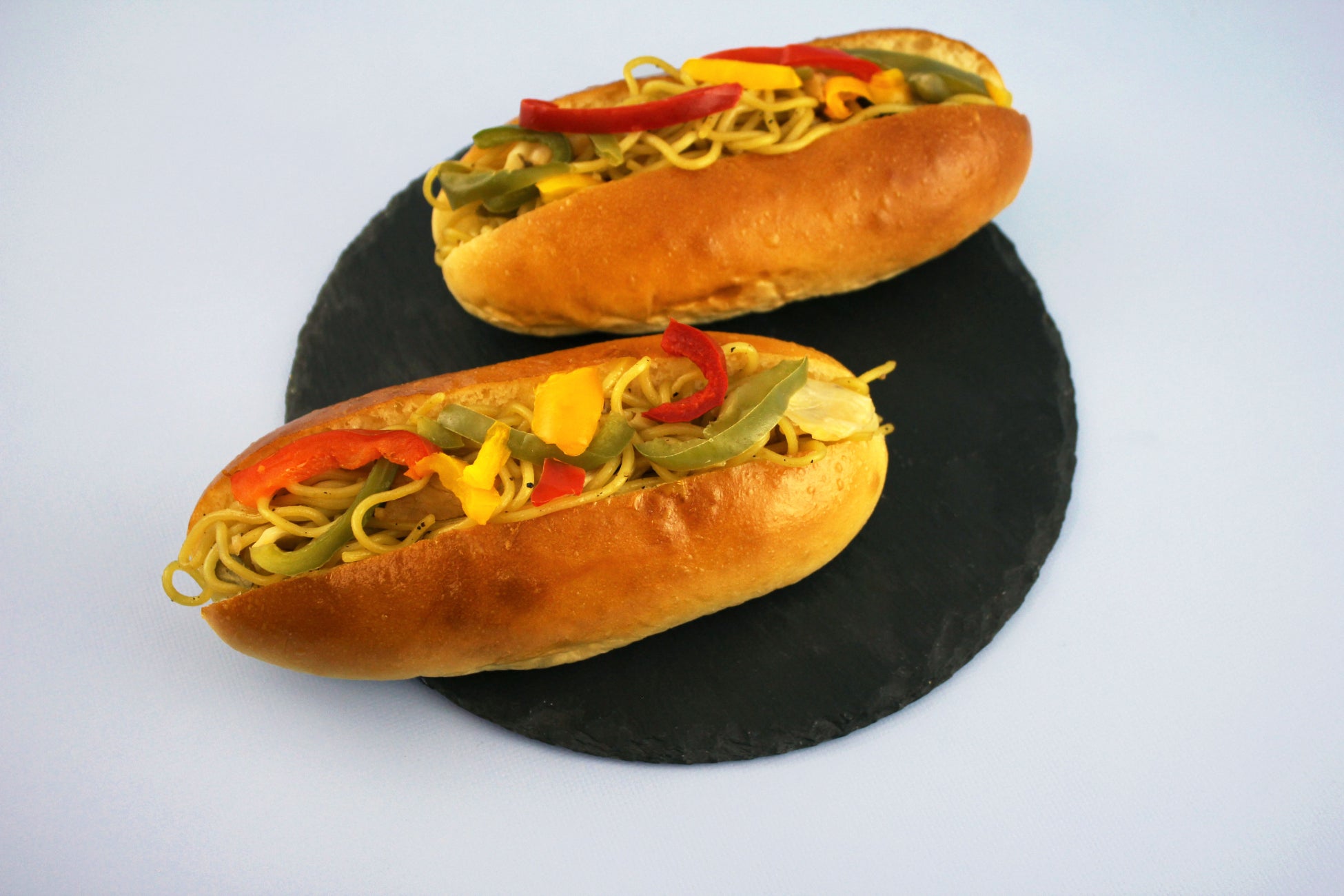 赤穗の天塩とチキンスープで仕上げた塩焼きそばをコッペパンにサンドしました。塩焼きそばは暑い日でも食べやすいあっさりとした風味で、パプリカの鮮やかな色合いがより爽やかさを引き立てます。