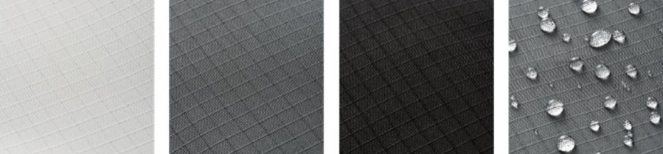 生地表面には撥水加工を施し、軽量で引き裂きに強いポリエステル糸を格子状に織り込んだリップストップ生地を採用。