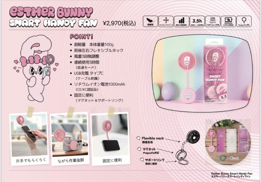既存の人気商品だけでなく新商品も多数展開し充実したラインナップをピンクの世界観と一緒にお楽しみください。また、エスターバニーだけでなく、『サンリオキャラクターズ(キャラクター大賞)』、『mikko illustrations』、『おでかけ子ザメ』、『ケロロ軍曹』など様々なコンテンツを展開するむにゅぐるみパティオも同時出店します。