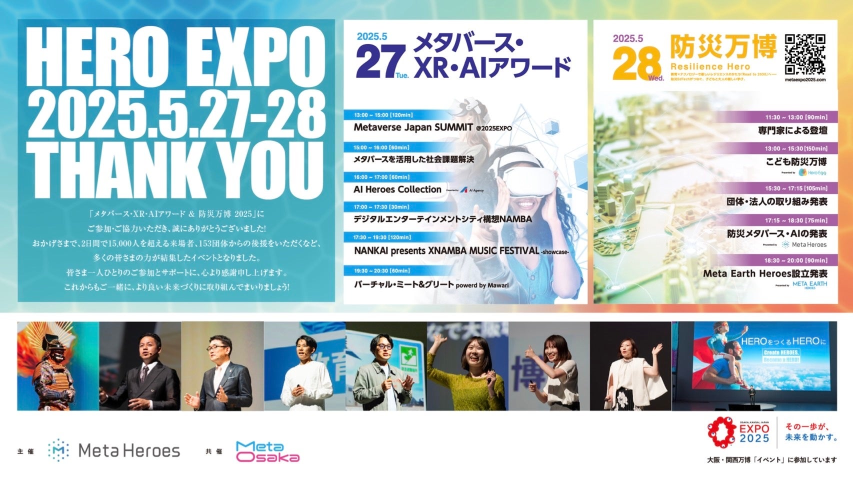 株式会社Meta Heroes(本社所在地:大阪府大阪市、代表取締役:松石和俊、以下「当社」)は、2025年5月28日(水)、大阪・関西万博の公式プログラムとして、「防災万博」をEXPOホール「シャインハット」にて開催いたしました。