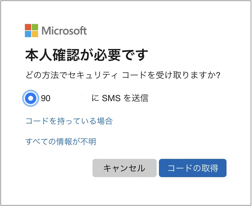 Step2:セキュリティコードを受け取る方法を選択し、受信した6桁のコードを入力します。なお、登録されているメールアドレスや携帯電話が使えない状態の場合には、この方法でパスワードをリセットすることはできません。