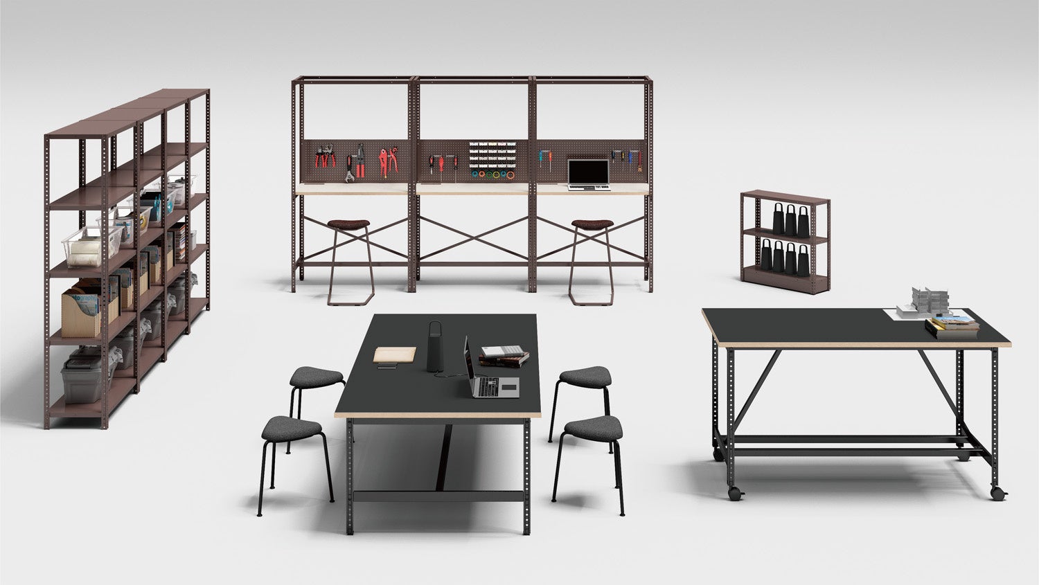 「クロスコ」は、テーブルとラックを組み合わせたチーム作業も個人作業も可能なラック型の作業台です。拡張性や強度で実績のある自社のラックをベースに開発しました。共同作業のテーブルタイプと個人作業のラックタイプをラインアップ、多彩なオプションと組み合わせてさまざまな作業に対応できます。ラックの構造で強度はそのままに、テーブルらしい外観やオフィスで使用しているベースカラーの採用など、オフィスや学校の空間でも違和感の無いディテールやカラーリングにしています。
