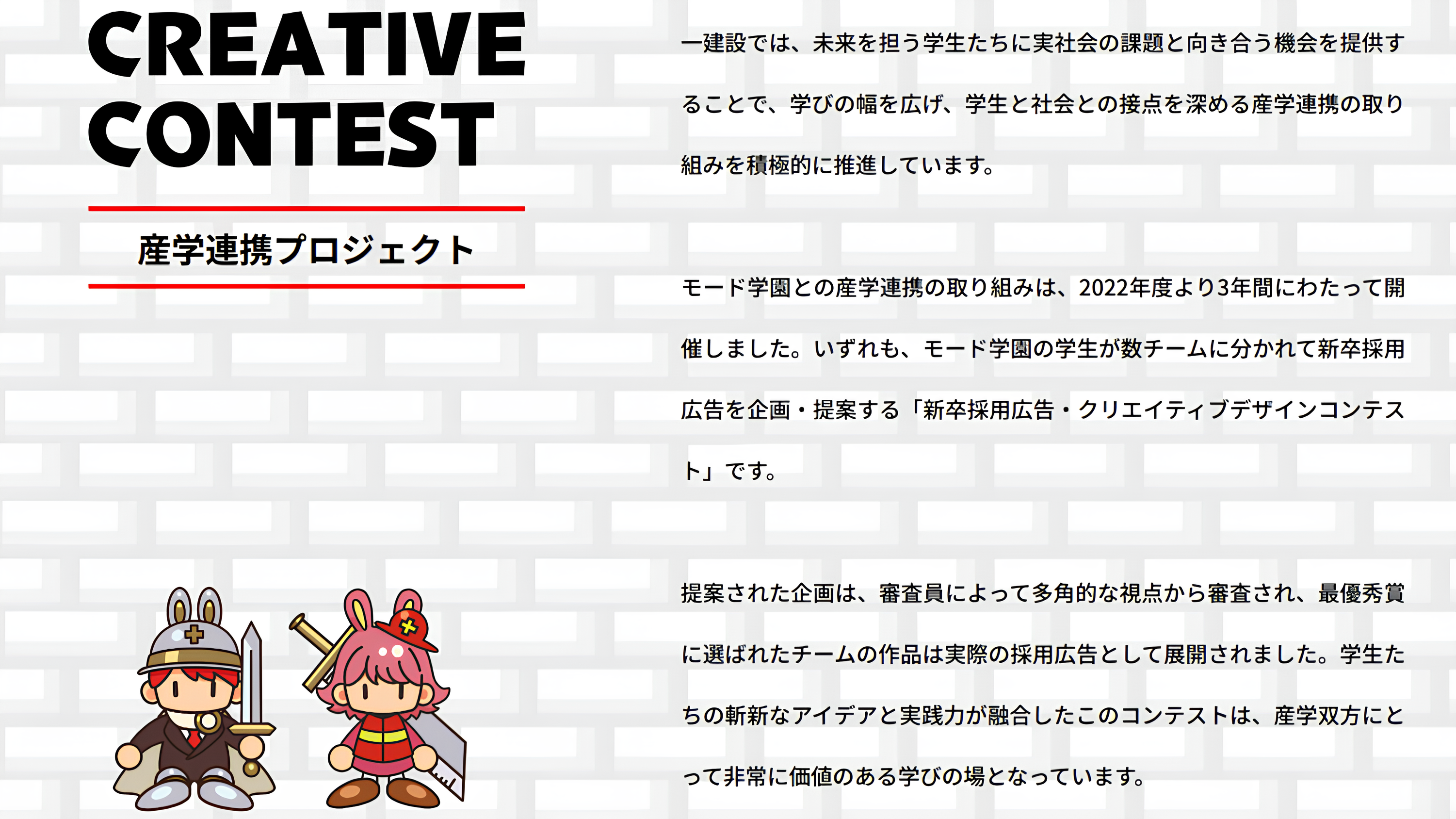 これまで一建設は、専門学校 東京モード学園、大阪モード学園、名古屋モード学園との産学連携を通じ、人材育成に取り組んできました。