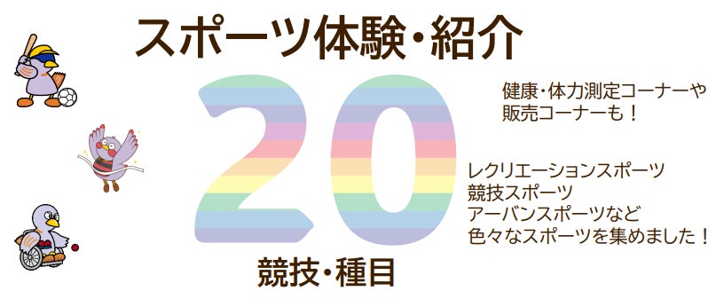 スポーツが好きな方もふだんスポーツをしていない方も、この機会にいろいろなスポーツを体験して、一緒にスポーツの秋を満喫しませんか?皆さまの御来場をお待ちしています。