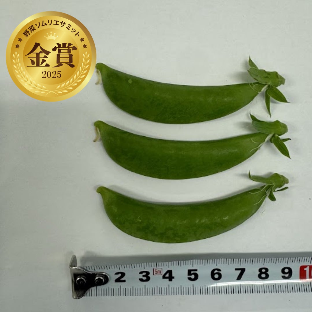 一般的なスナップエンドウより大きく、食べ応えがあります。くせがなく、甘みが強いのが特徴です。莢が硬くならず、さやごと食べられパリッとした食感も楽しめます。