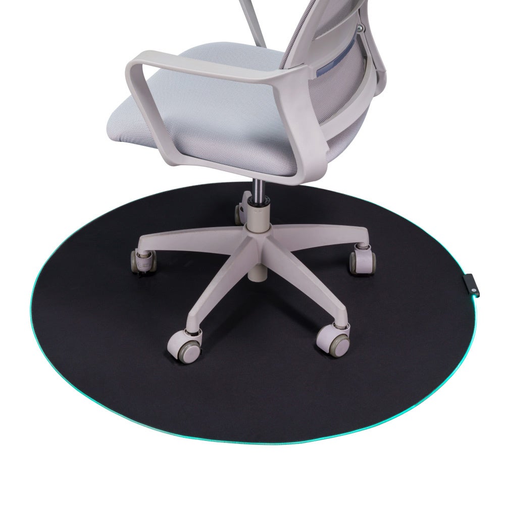 LEDが足元を彩り、床への負担を軽減するチェアマット