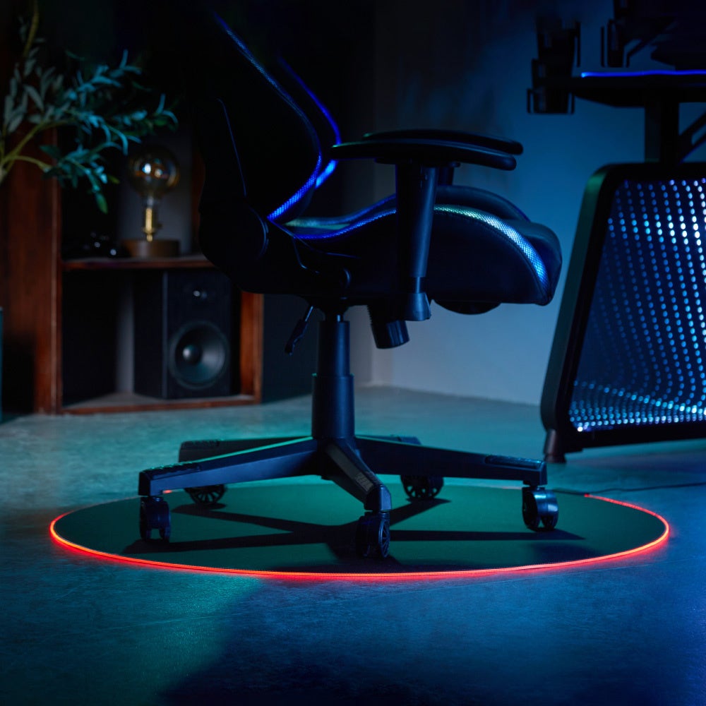 ゲーム中の気分を上げたい。普通のチェアマットだと物足りない、そんな方におすすめの『RGBチェアマット』です。