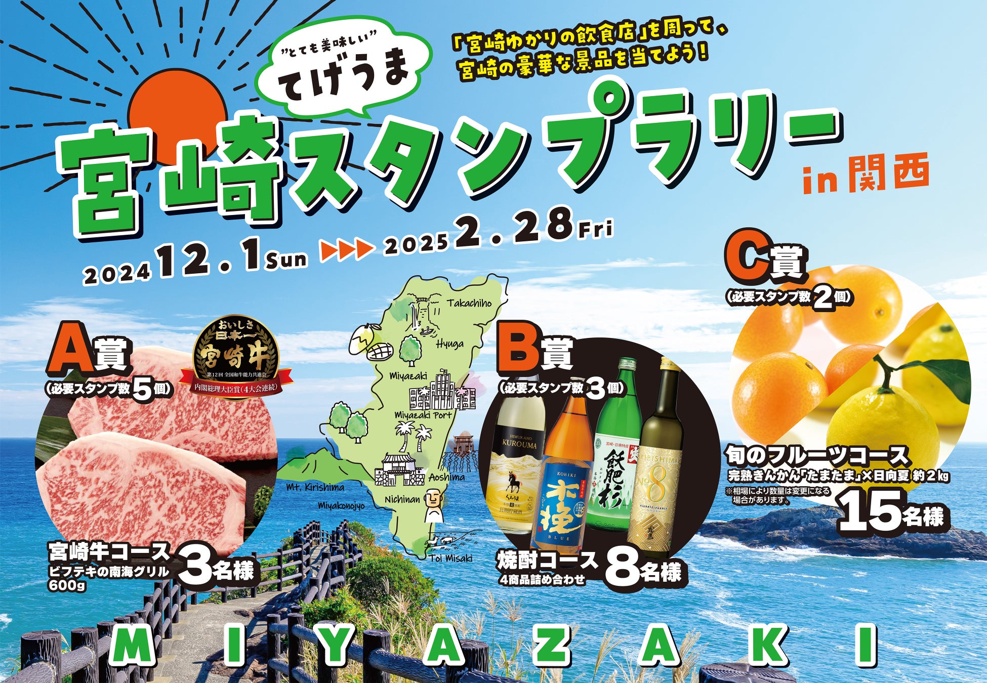 宮崎県大阪事務所は、関西圏における宮崎県の認知度を向上させるとともに、宮崎県産品の販路や関係人口の拡大等へ繋げることを目的として、宮崎の食や観光の発信拠点である「宮崎ゆかりのお店」と連携したデジタルスタンプラリーを実施します。