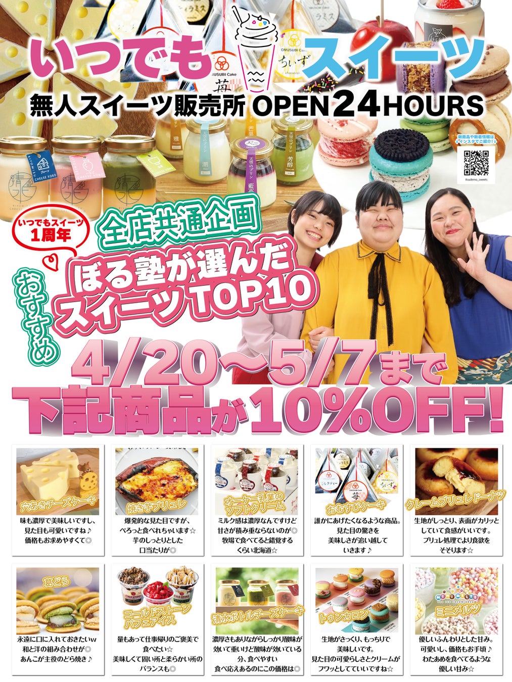 4⽉20⽇〜5⽉7⽇ いつでもスイーツ全店舗にて、
