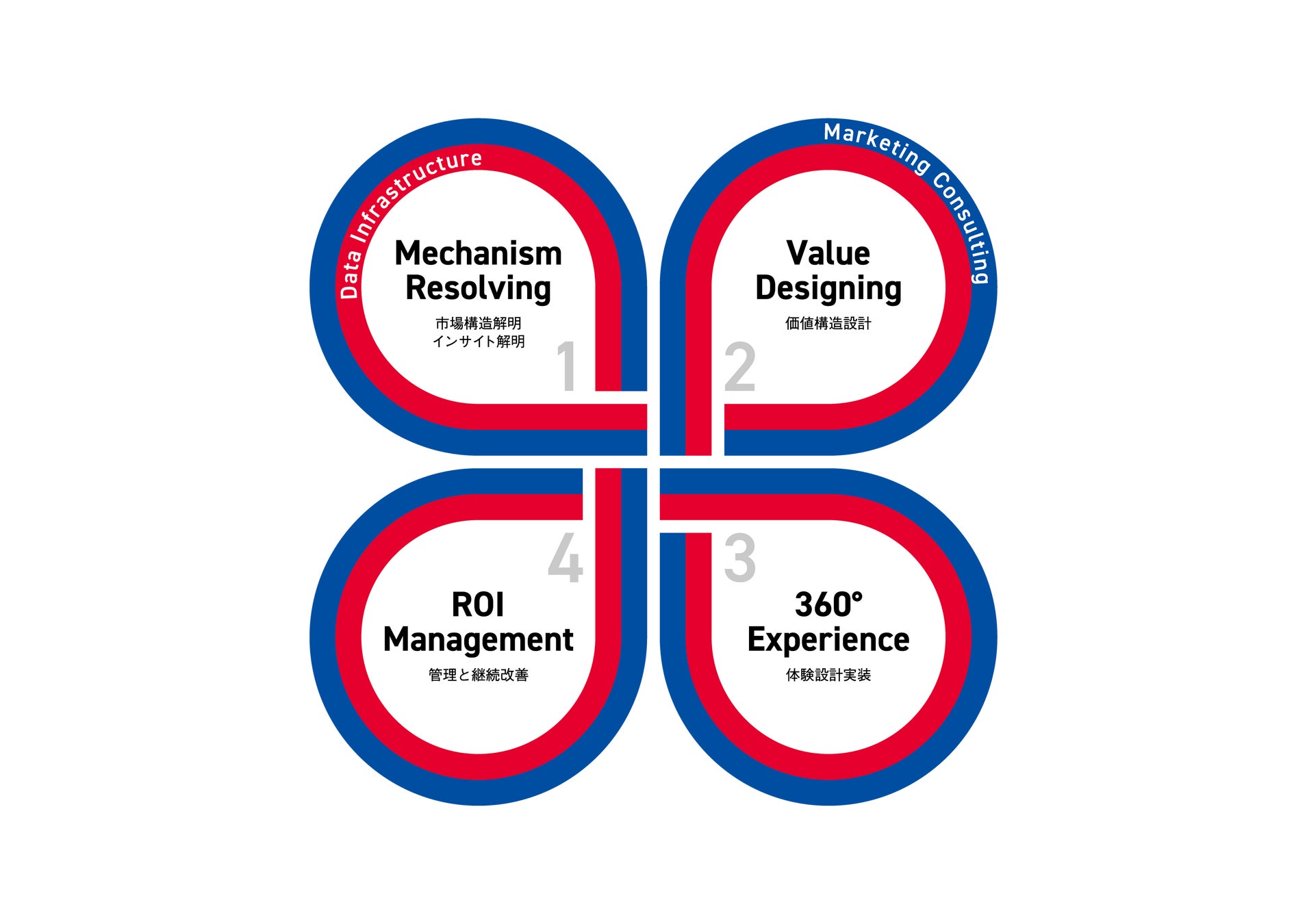 本プロジェクトは、dentsu Japanが提唱する事業グロースのための次世代マーケティングモデル「Marketing For Growth」の4つのプロセスのうち「Value Designing(価値構造設計)」および「360°Experience(360°エクスペリエンス)」 に該当するサービスです。「Marketing For Growth」については以下リリースをご確認ください。