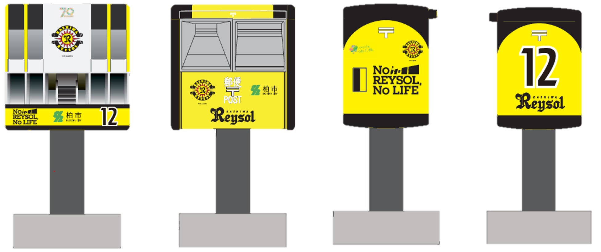 柏市では、市制施行70周年を記念して、市が包括連携協定を結ぶ日本郵便株式会社及び柏レイソルの協力を得て、柏レイソルとコラボしたデザインの郵便ポストを市内5カ所に設置します。ホームタウンチームとして根強い人気があり、市のシンボル的存在となっている柏レイソルとコラボすることで、「柏レイソルのあるまち」をさらに印象付け、人々の交流のきっかけづくりとなることを目指します。