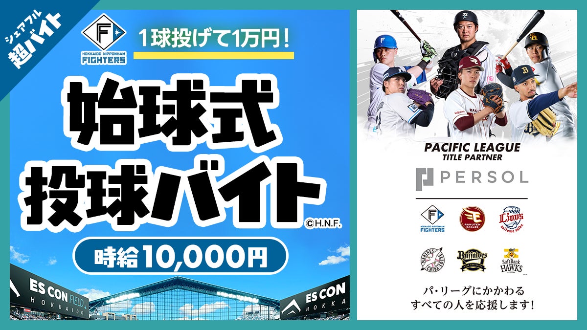 「はたらいて、笑おう。」をビジョンに掲げるパーソルグループのスキマバイトアプリ『シェアフル』やSaaSシフト管理サービス『シェアフルシフト』、就業実績を活用した人材紹介サービス『シェアフルエージェント』などを提供するシェアフル株式会社(本社:東京都港区、代表取締役社長:横井 聡)は、2025年7月6日(日)にエスコンフィールドHOKKAIDOで行われる、「北海道日本ハムファイターズ vs 東北楽天ゴールデンイーグルス」の始球式にて投球する超バイトを募集します。