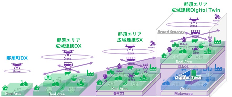 本協定では、那須町における二地域居住の促進、ドローン関連のスペシャリスト人材の育成、公共インフラ維持管理の効率化、地域DX推進による課題解決および持続可能な体制整備を推進します。また周辺の複数自治体や企業と連携した「広域エリア連携エコシステム」の構築や、自治体間および官民の枠を超えて資源やノウハウの共有・連携等相互協力・補完の実現による住民生活の向上や行政効率化を図り、持続可能な地域社会の実現に貢献していきます。