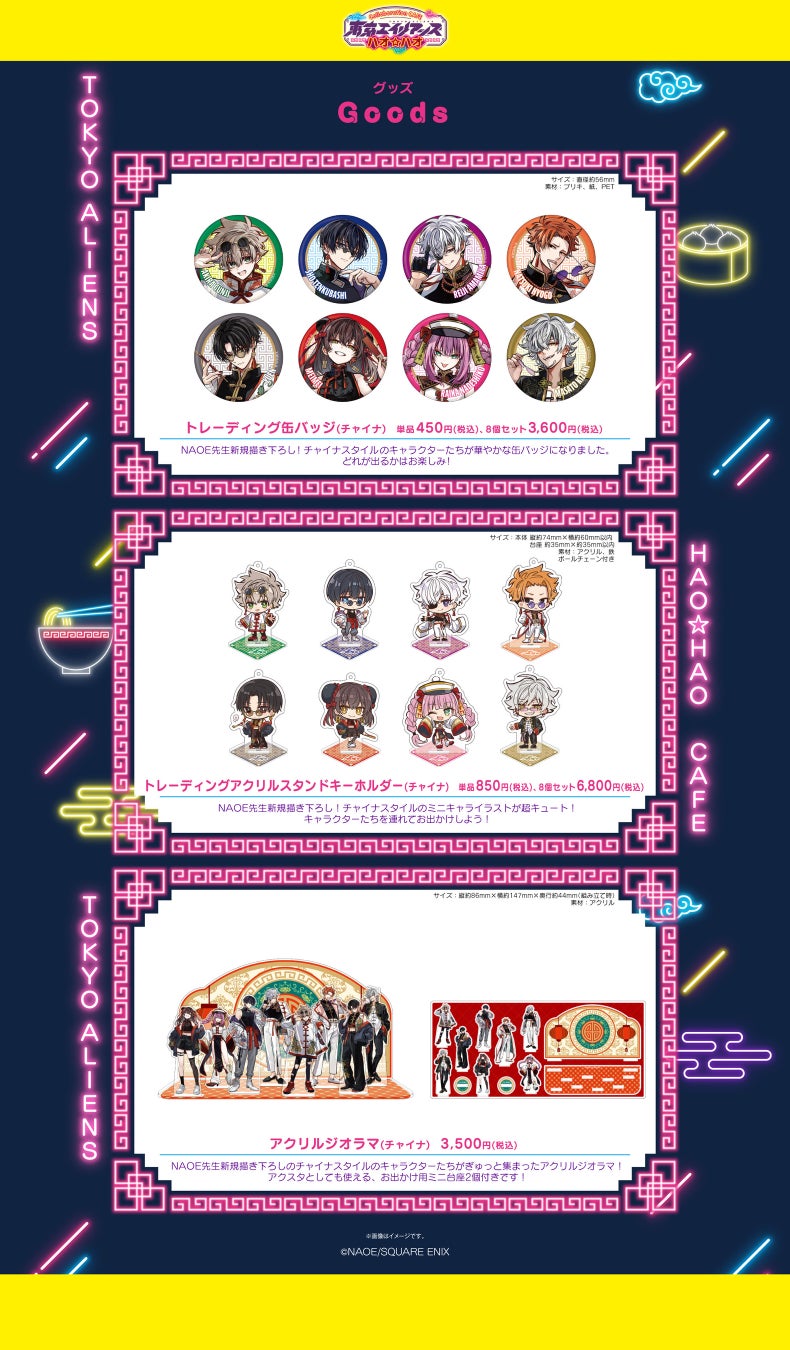 「東京エイリアンズ ハオ☆ハオ カフェ」で販売されるグッズラインナップをご紹介いたします。