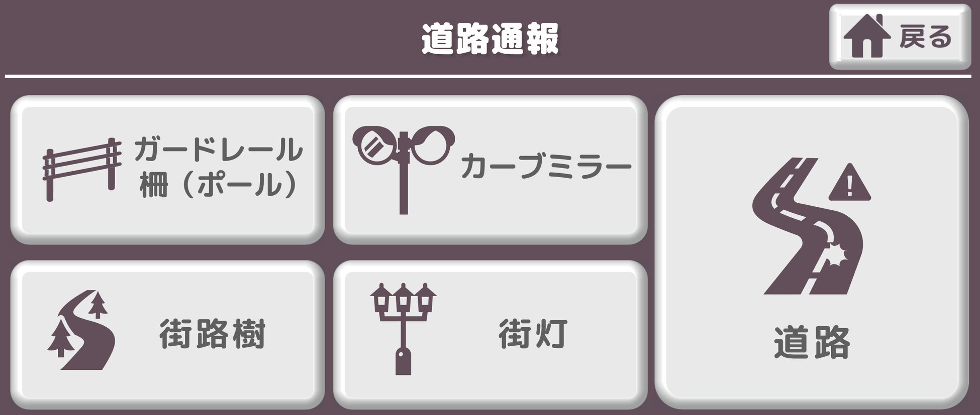 (注)道路陥没や街路樹の倒木などの緊急性の高い通報は、引き続き電話での対応となります。通報は、道路の不具合などの情報収集を目的としているため、個人情報の収集や個別の返信は行いません。