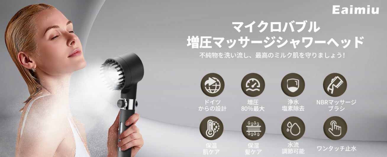 この機会に、Eaimiuのマイクロナノバブルシャワーヘッドで、特別なバスタイムをお楽しみください!