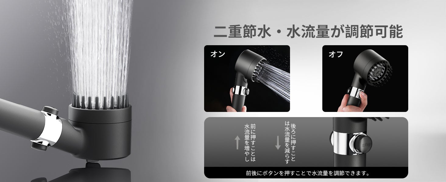 低水圧地域でも安心して使用できるよう、Eaimiuのシャワーヘッドは三重の増圧技術を搭載しています。シャワーヘッドの先端には二重組み合わせ型散水板を使用し、水圧を80%以上向上させることができます。三つの水流モード(総合モード、レインシャワーモード、マイクロナノバブルモード)を搭載し、日常の水道代も削減可能です。手元で簡単に水量を調整でき、必要なときにすぐに止水することができます。
