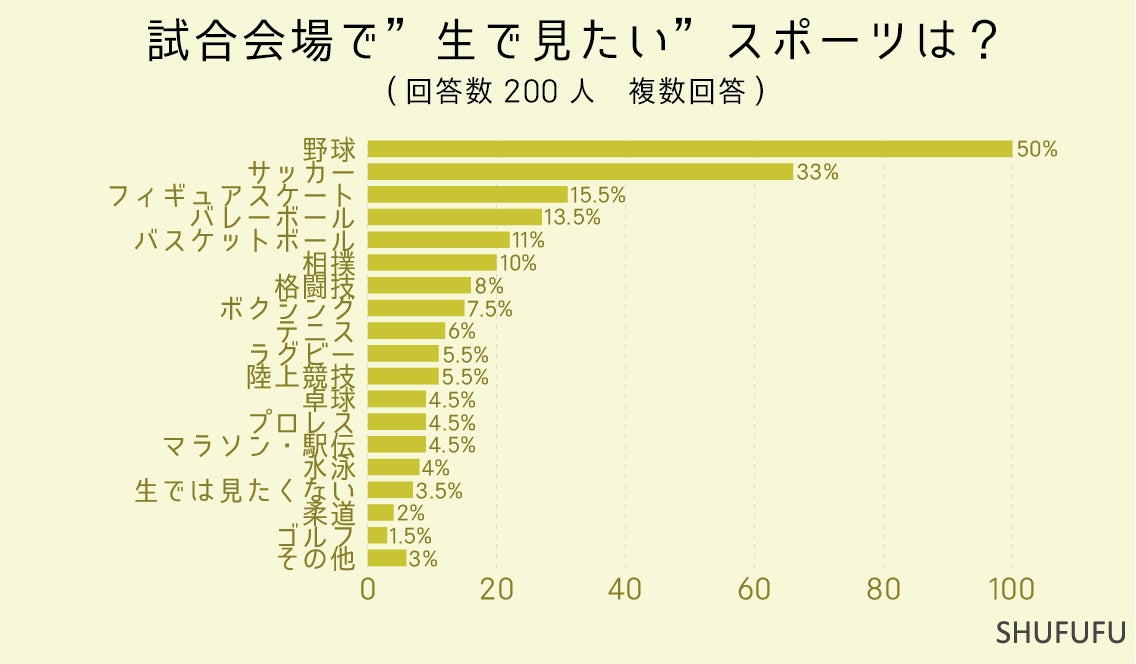 試合会場で”生で見たい”スポーツは?(複数回答)