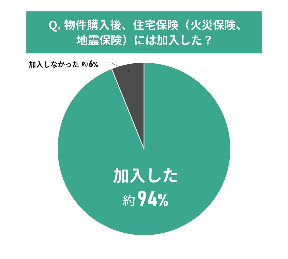 94%という高い加入率から、ほとんどの購入者が住宅保険の必要性を認識していることがわかります。一方で、6%の方は保険に加入していない状況です。