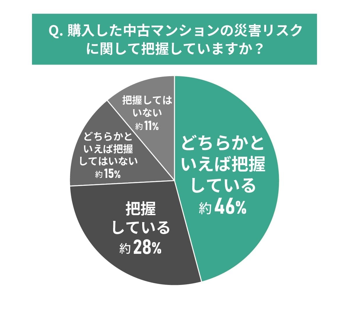 「どちらかといえば把握していない」「把握していない」を合わせると26%となり、災害リスクと同様に4人に1人は十分な理解がないまま購入しています。
