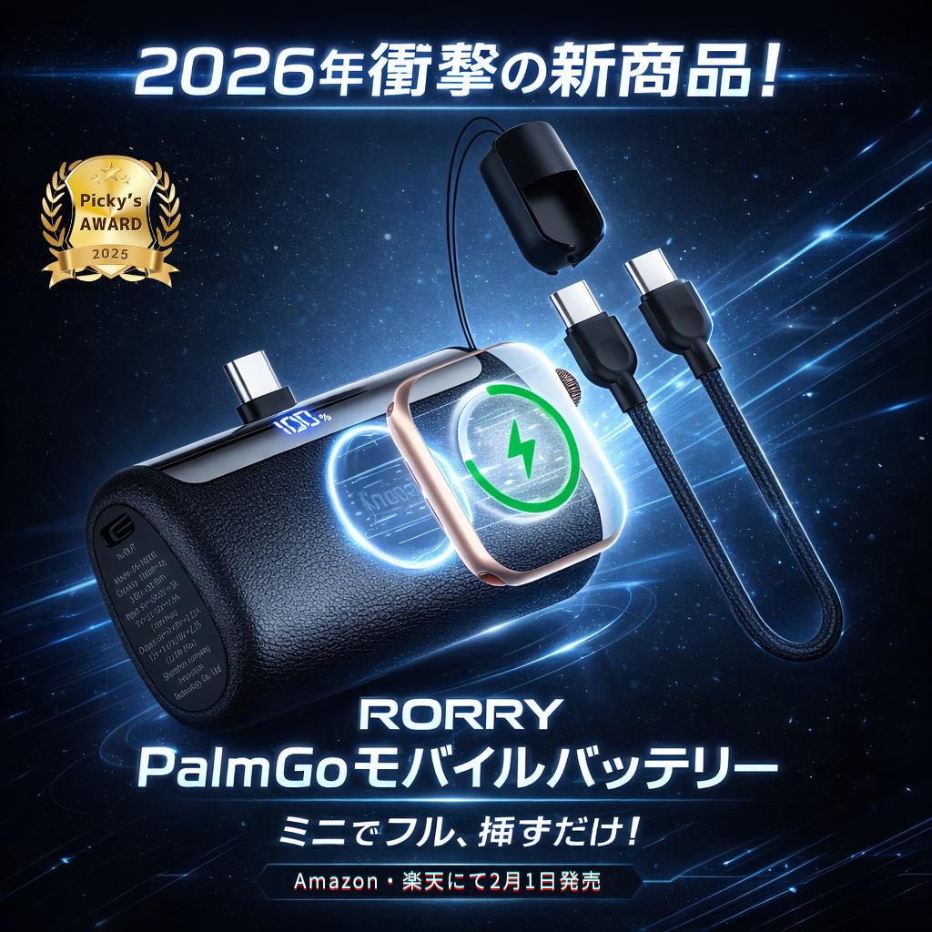 2026年2月1日、RORRY「Palmgo(パームゴー)」モバイルバッテリー販売開始