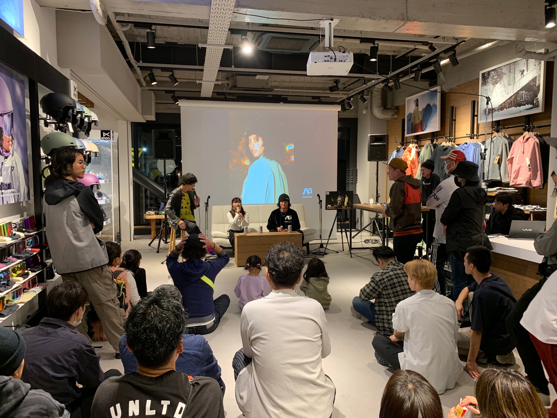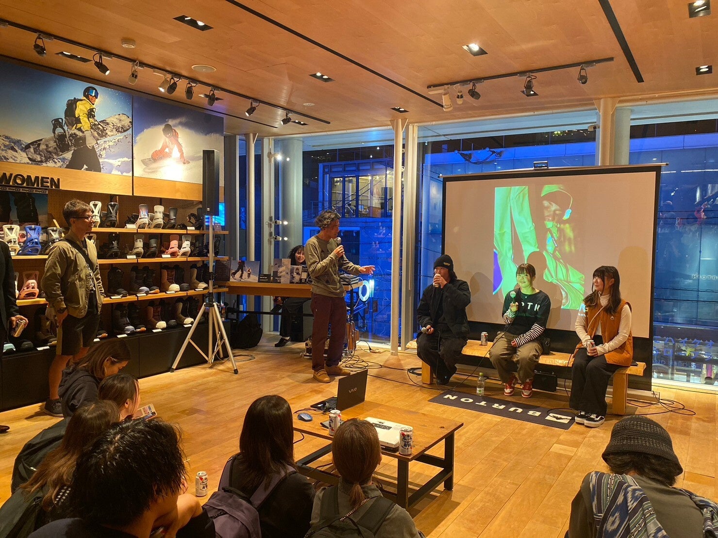 この度、コレクションのお披露目と合わせて、 Burtonグローバルライダーのニールズ・シャックが描く、オリジナリティ溢れるスタイルが見どころのブランドムービー「Blooom」を、東京・大阪にてプレミア上映。両日共に、 Burtonチームライダーの片山來夢・岩渕麗楽が特別ゲストとして登場し、東京会場には先日チームにジョインした深田茉莉も駆けつけ、トークショーでは今シーズンの活動に関する話題や、特別なプレゼントが当たる抽選会で盛り上がりました。