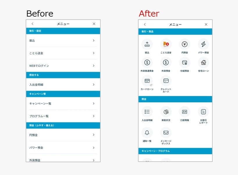 ■アプリのメニュー画面を従来のテキスト中心のデザインから、アイコンを用いた直感的なUIに刷新しました。