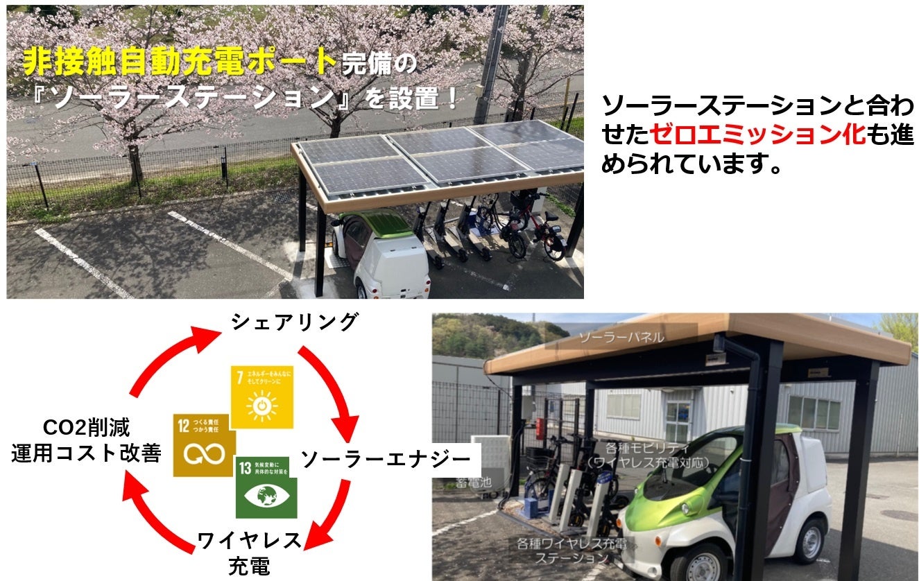 また、これらのワイヤレス充電ポートはソーラーステーションと合わせ設置されており、エナジーハーベストにより生み出した電力をワイヤレスでモビリティーへ充電するゼロエミッション型完全自動の充電システムを構築しています。