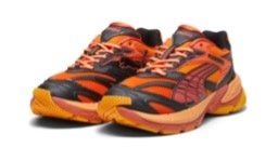 シューズは、フューチャーレトロなY2Kテイストのシューズ「VELOPHASIS(ベロファシス)」をベースにした2モデルが登場します。「VELOPHASIS OVERDYED PLEASURES(ベロファシス オーバーダイ プレジャーズ)」は、オフホワイトカラーにソールの微妙な黄ばみによりオーバーダイ(後染め)加工の美学を継承しています。「VELOPHASIS LAYERS PLEASURES(ベロファシス レイヤー プレジャーズ)」は、大胆なオレンジ、イエロー、ブラックのカラーブロッキングをミックスしたモデルで、「VELOPHASIS OVERDYED PLEASURES」と対照的なカラーのモデルに仕上げています。