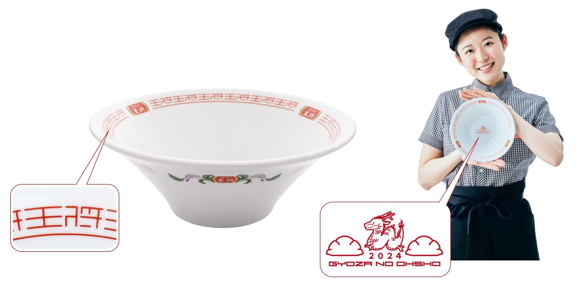 おウチでお店気分が味わえるラーメン鉢。深さのあるオシャレなフォルムです。底には今年の干支である辰と餃子の可愛いイラスト入り。