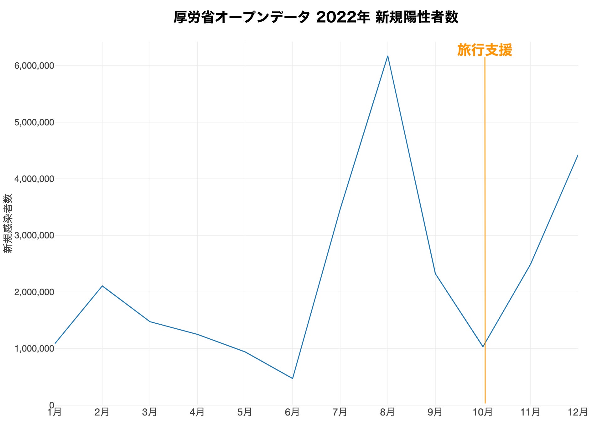 厚労省の2022年の新規陽性者発表と比較してみたいと思います。