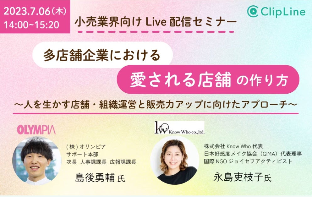 2023年7月6日(木)無料開催 小売業向けオンラインセミナー『多店舗企業における「愛される店舗」の作り方〜人を生かす店舗・組織運営と販売力アップに向けたアプローチ〜』