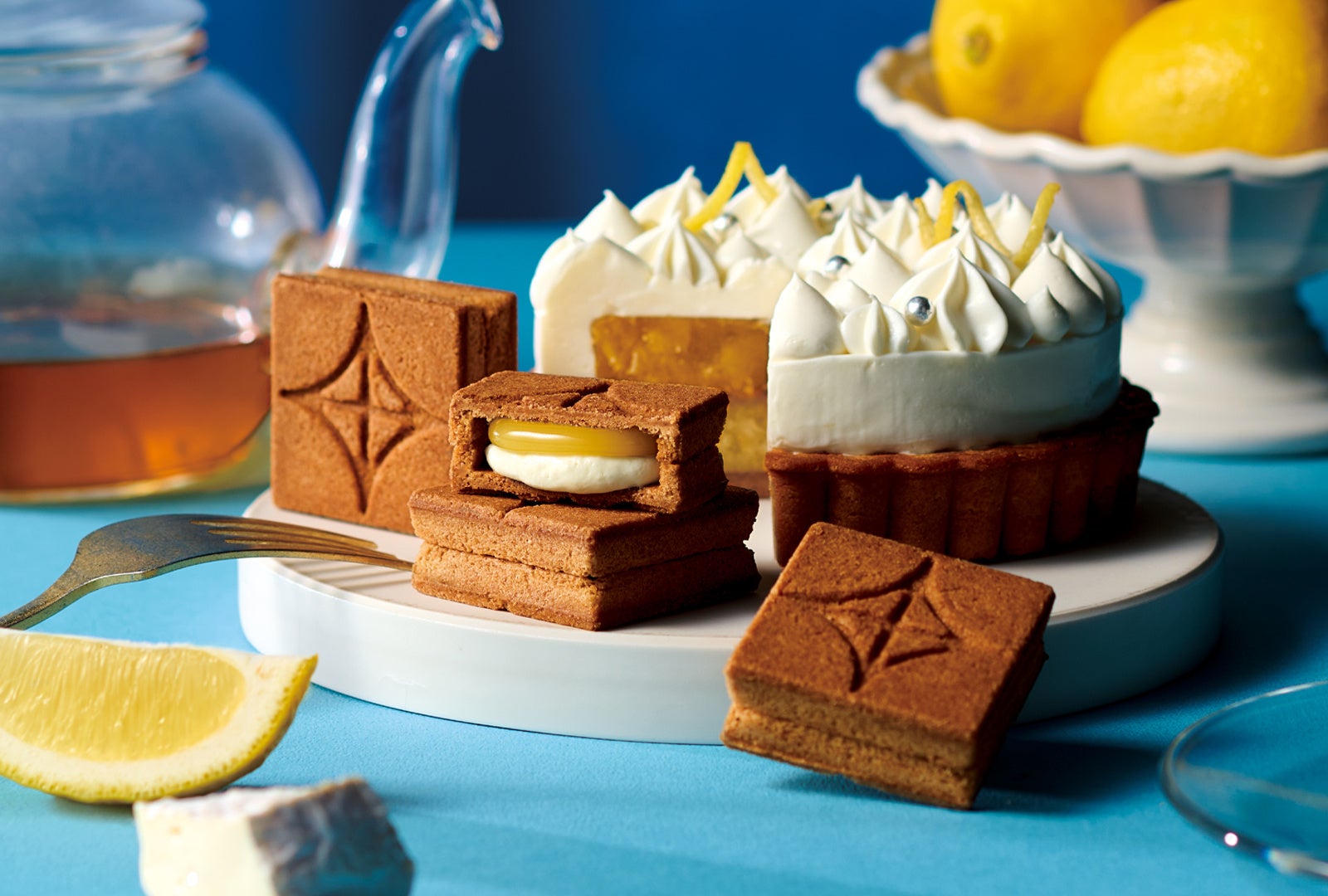 まるでケーキのように贅沢な味わいの「デセール・バターサンド」シリーズから〈チーズタルト〉が誕生。爽やかなチーズバタークリームと瀬戸内産レモン果汁入りの檸檬バターキャラメルを、全粒粉を入れたザクっと食感のクッキー生地で挟みました。チーズバタークリームには、クリームチーズ、チェダーチーズ、カマンベールチーズといった3種のチーズを使用することで、味に深みを出しています。