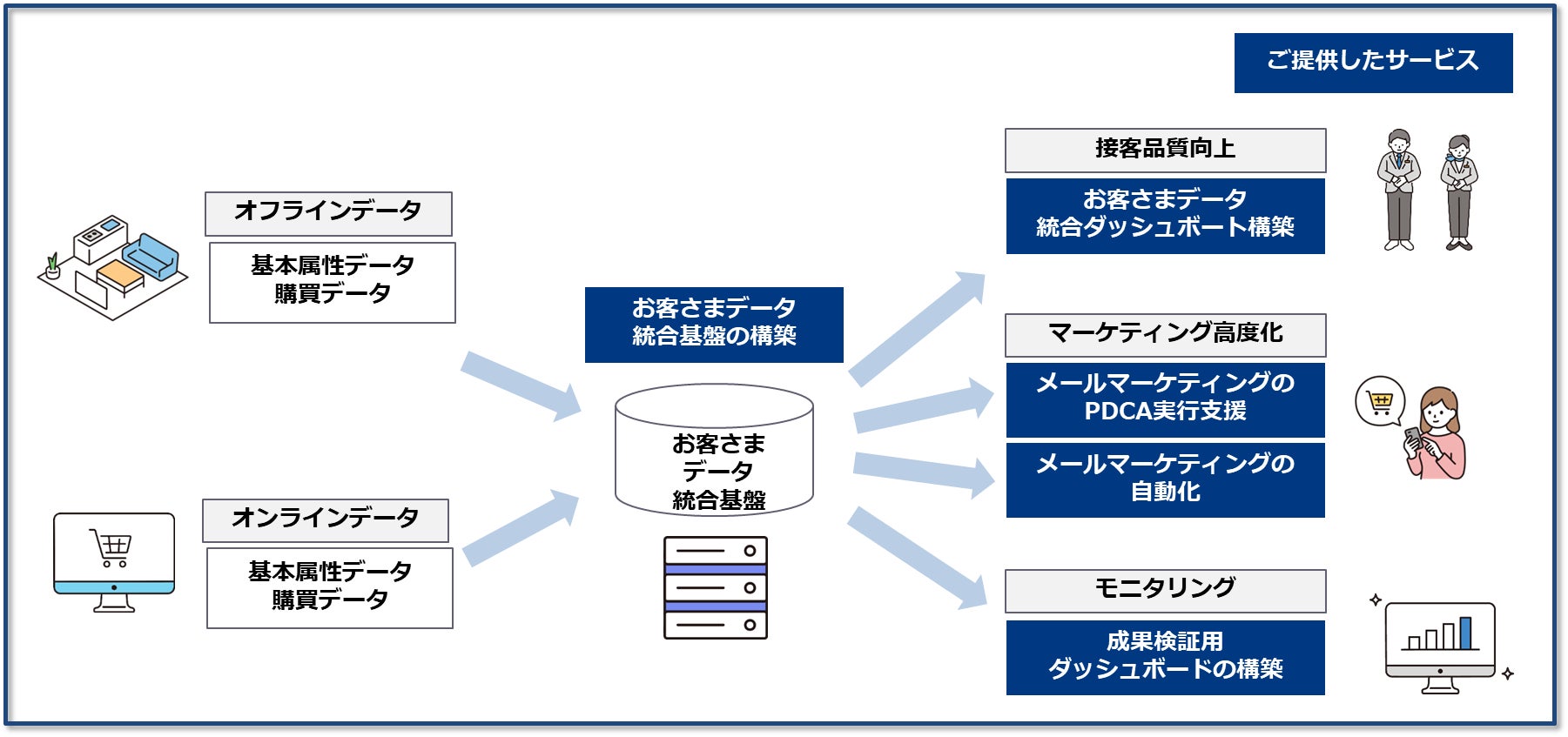 Speeeは、和光と同じセイコーグループのグループ会社である株式会社 セイコーソリューションズ(千葉県千葉市、代表取締役社長:関根 淳、以下 セイコーソリューションズ)とともに、実店舗データとオンラインストアデータを統合的に管理・利活用できるデータ統合基盤構築と利活用の仕組みの導入を支援しました。
