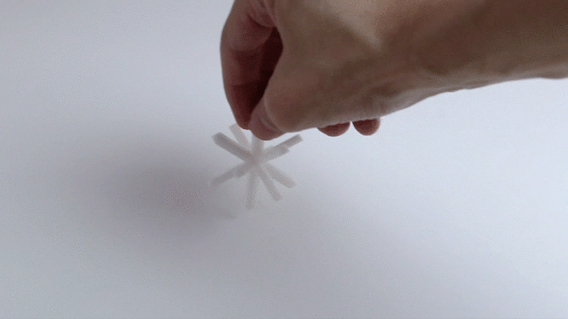 なんだか、たたずまいがかわいいので形にしてみました。アスタリスクのような、雪や鉱石の結晶のような。コマのように回して遊ぶも良し、アクセサリースタンドとして使うも良し。正多面体をベースにして作っているのでどの向きで置いても安定するし、きれいにスタッキングすることもできます。