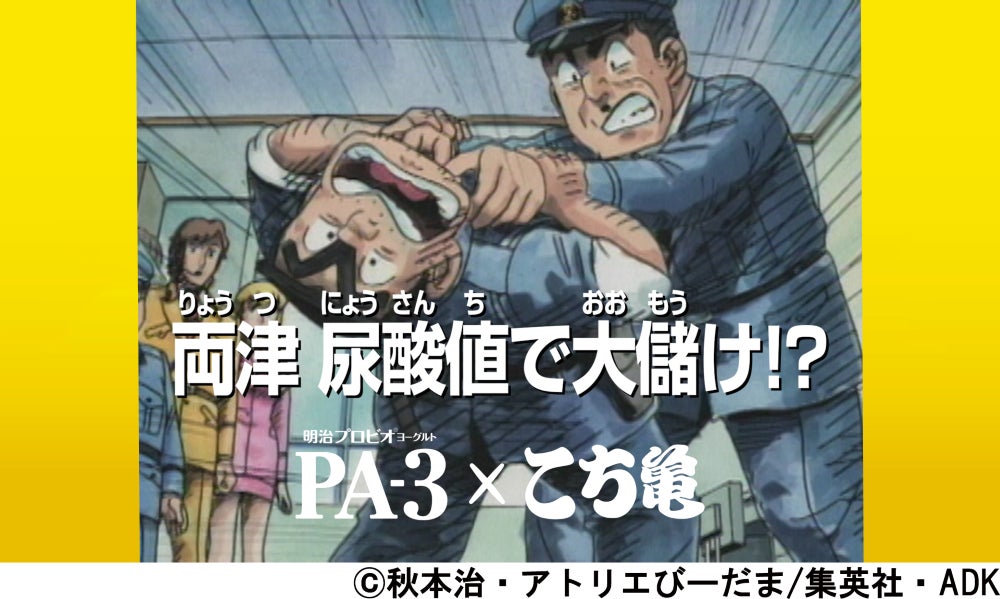 「尿酸値のことはわしに任せろ!」両さん、明治に協力して一儲け!?「明治プロビオヨーグルトPA-3」×『こちら葛飾区亀有公園前派出所』が特別コラボ