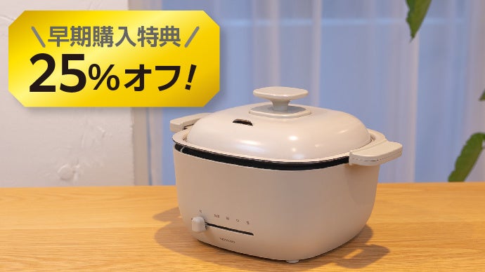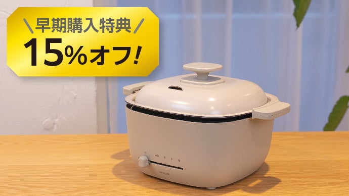 理美容器具などの自社商品の企画・開発と、国内外のメーカーブランド商品を取扱い、販売する代理店業を展開する小泉成器株式会社(本社:大阪市中央区備後町、代表取締役社長:橋本直志)は、卓上でこれ1台!「調理」から「片付け」まで楽々な「ミニグリル鍋(KHP-0651/C)」を8月6日(火)に、クラウドファンディングサイトMakuake(マクアケ)にてプロジェクト開始いたしました。