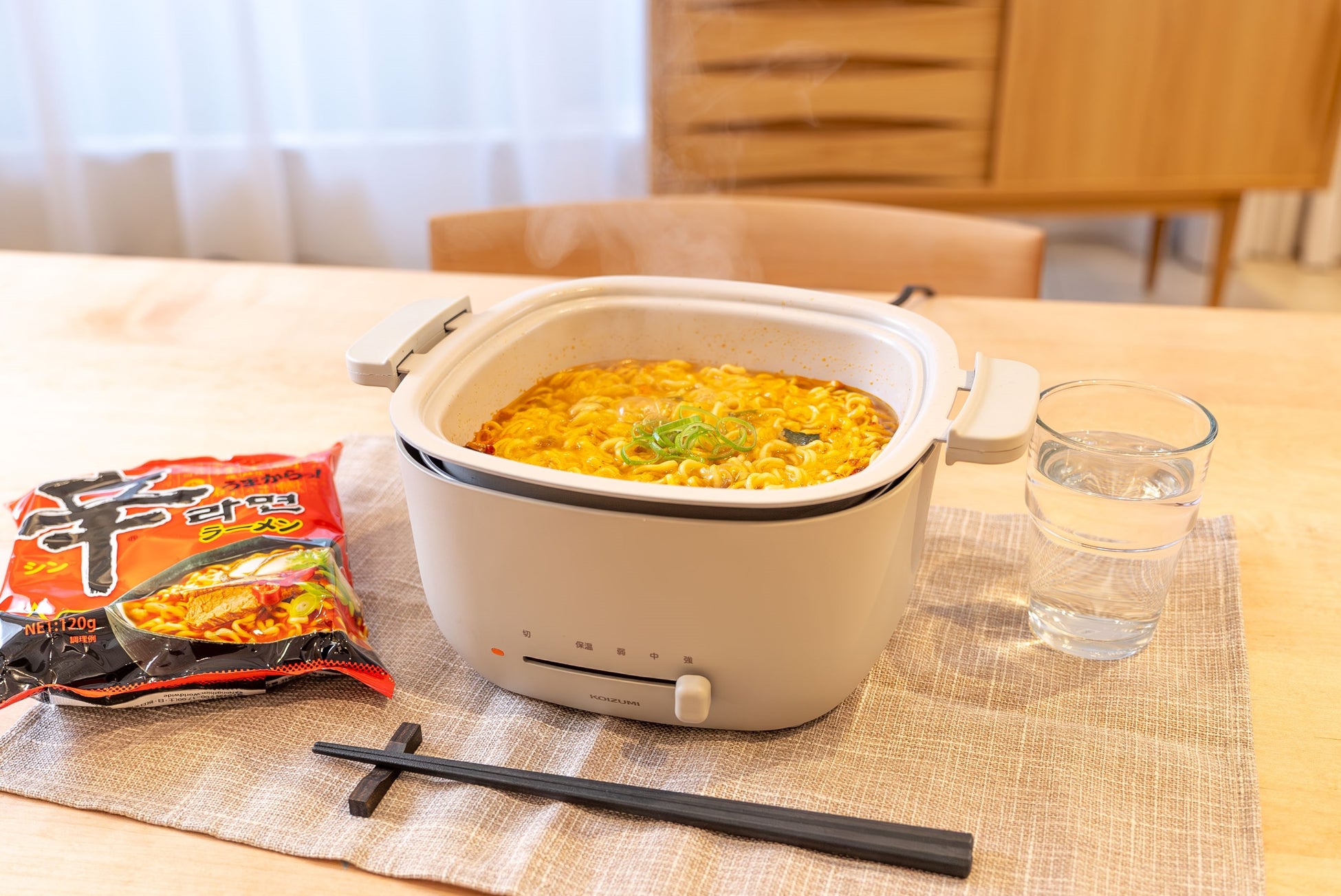 これ1台あれば、卓上で野菜炒めやビビンバ、餃子や鍋、パスタや即席ラーメンまで様々な料理が楽しめます。面倒な調理は、気軽に使えるミニグリル鍋にお任せ!