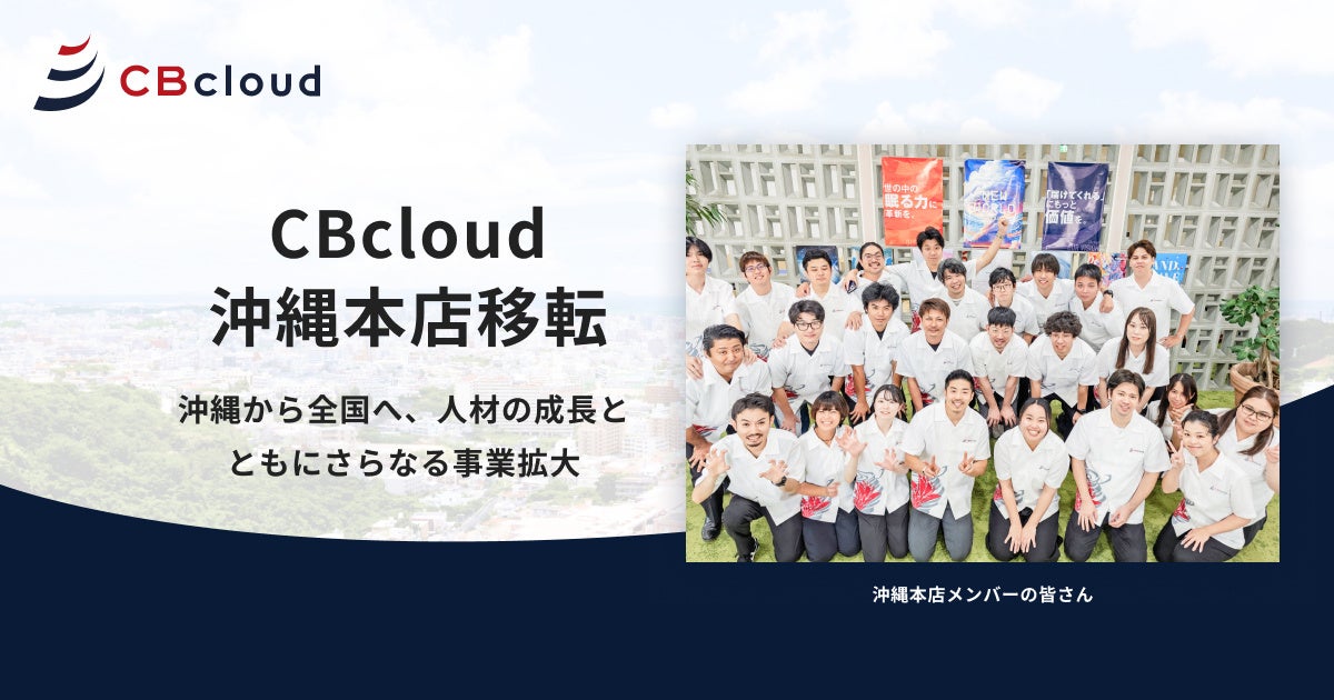 CBcloud株式会社(以下「当社」)は、2024年10月25日をもって本店を沖縄県へ移転することを決定いたしました。当社は2020年4月、沖縄支店を立ち上げ、人口増加が進む沖縄を人材獲得戦略の一環として注目し、拠点設立に至りました。