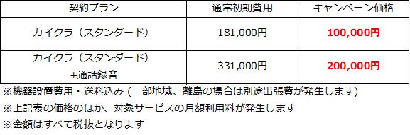 このキャンペーンは、「カイクラ」の導入にかかる初期費用を割引するもので、初期投資を抑えながら業務の効率化を図りたい企業様や、今まで初期の導入費用が障壁となり迷っていた企業様にとって、有効に活用できる内容となっています。