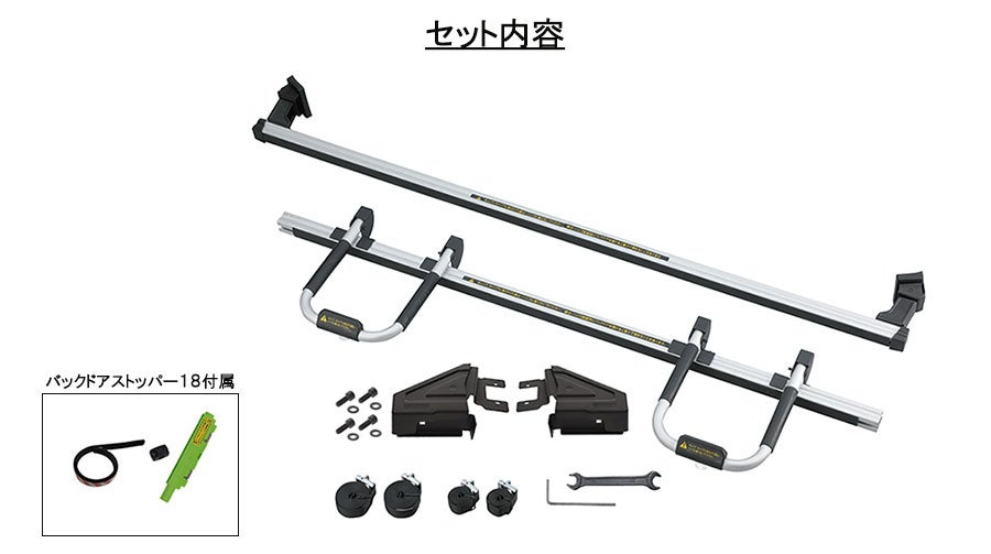 ・付属品:バックドアストッパー18(BU803)、固定用ハイグレードベルト(1m×2本、2.2m×2本)