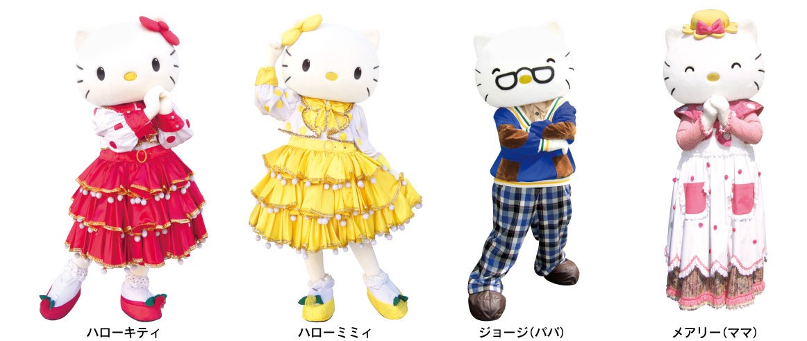 ハローキティ、ハローミミィ、パパ、ママが1年ぶりにそろって登場するハググリーティングなどが楽しめます。