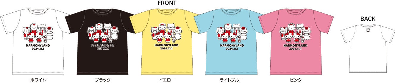 ハローキティの50周年を記念して、2024年11月1日(金)より事前購入チケットでご入場された方先着1,101名様にオリジナルデザインのTシャツをプレゼントします。Tシャツプレゼントの条件は、全国のサンリオショップおよびギフトゲートで事前購入した「オリジナルデザインパスポートチケット」でハーモニーランドに来園すること。50周年のアニバーサリーイヤーにちなみ、「5色」のTシャツをご用意しました。今年は、ハローキティと双子の妹・ハローミミィをはじめとしたファミリーが勢ぞろいした、アニバーサリーイヤーにふさわしい特別なデザインです。
