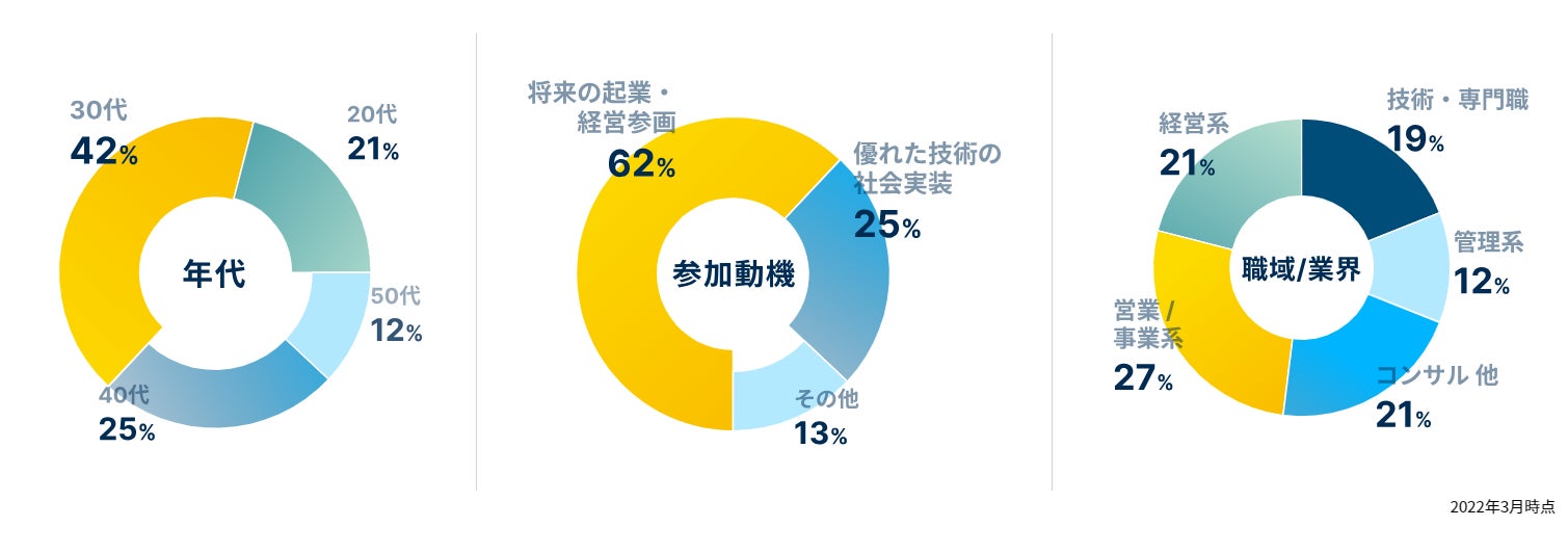 2017年発足以来、累計500名以上が参加し、大学発・ディープテック領域で50名以上の創業経営者・CXOを輩出してきました。2021年には内閣府の日本オープンイノベーション大賞を受賞しています。