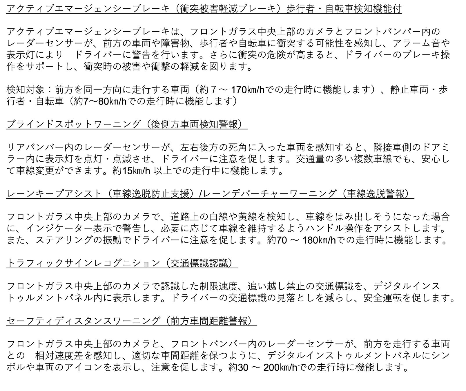 横滑り防止装置(ESC)、緊急時ブレーキアシスト(EBA)、電子制御制動力配分システム(EBD)付ABS、全席シートベルトリマインダー、タイヤ空気圧警報を装備しています。