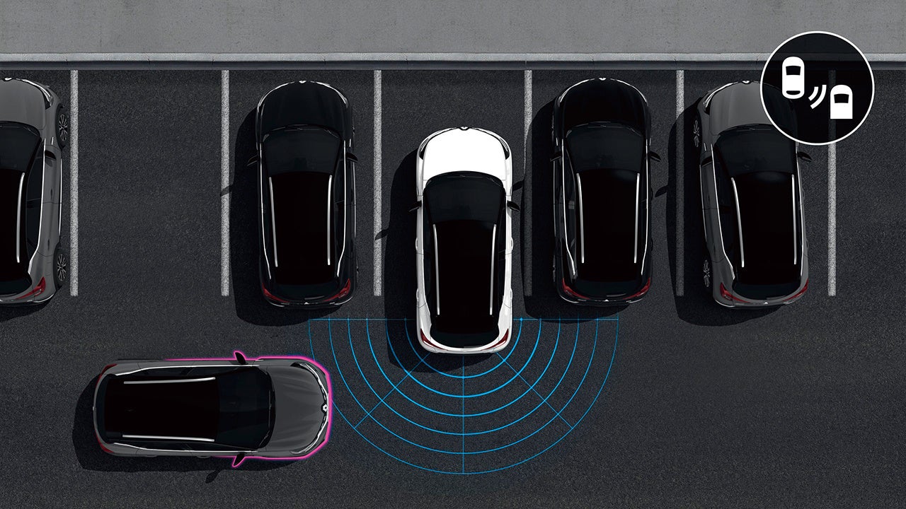 シフトレバーをリバースに入れた際、この車両の左右後部に接近する車両を検知すると、ドアミラー内の表示灯の点灯と7インチ マルチメディア EASY LINK (イージーリンク)タッチスクリーンの後方映像の画面表示により注意を促します。
