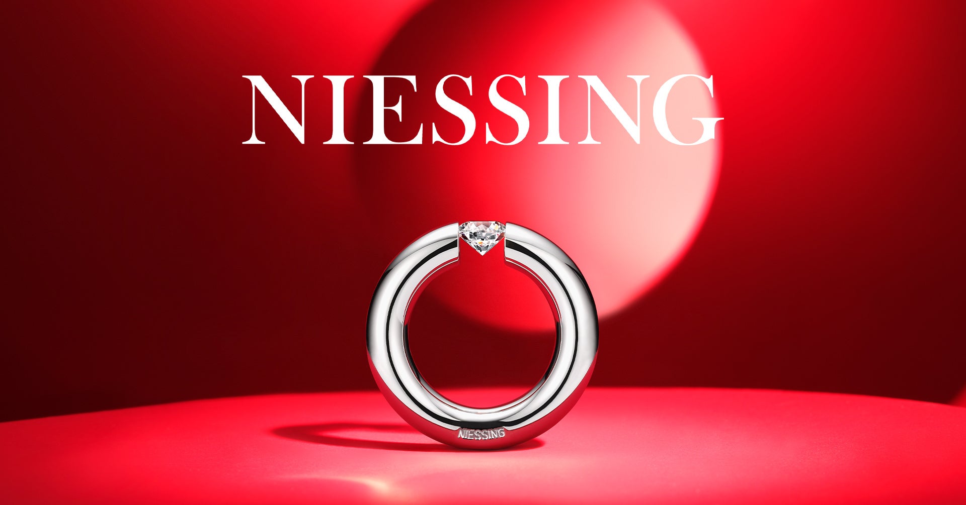 このアニバーサリーカラーは、ハートと矢をモチーフにしたNIESSINGの象徴的なブランドロゴの色(グレナディンカラー)をゴールドで表現したものです。