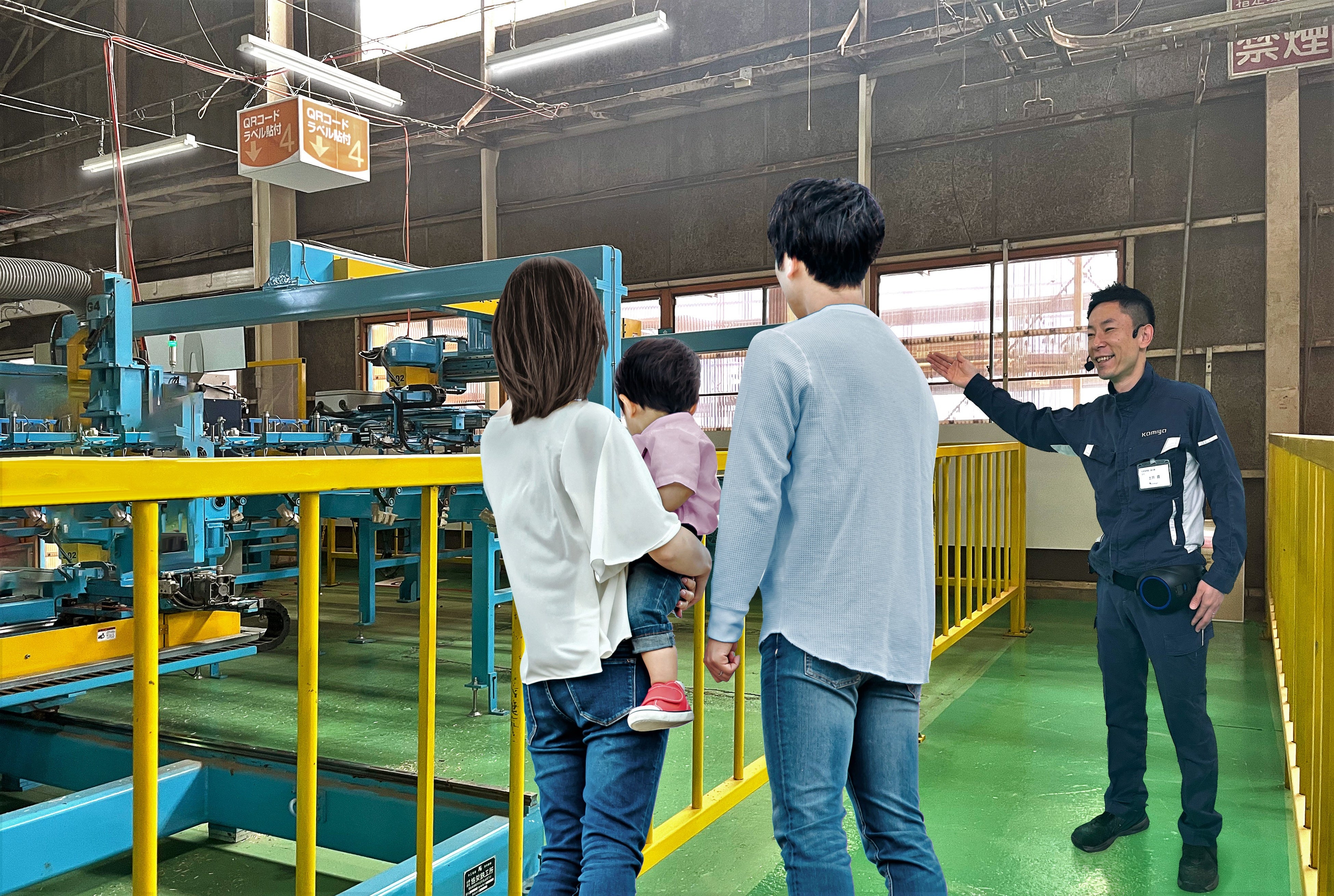 一般的に建材メーカーにとっての顧客は工務店や商社などの法人です。そのため一般のお客様向けに工場内を公開するケースは他になく、この度の当社の取組みは大変意義のあることだと考えております。元々、当社はBtoB企業ながらも真のお客様は”実際に家を建てて住む施主である”と位置付けております。そこで社長の神谷が「せっかく工場が首都圏にあるのだから、お施主様にぜひ見ていただきたい」と発案。これをきかっけに、施主に見ていただける工場づくりを進める「工場魅せる化プロジェクト」が2022年7月に発足しました。7か月かけて工場内の課題を洗い出し美化や整理整頓に取り組む一方で、照明の増設やモニターの設置、一般の方が理解しやすい説明POPなども新設しました。また2023年2月からは自社社員を見学者に見立てて模擬見学ツアーを行い、準備と改善を重ねてまいりました。